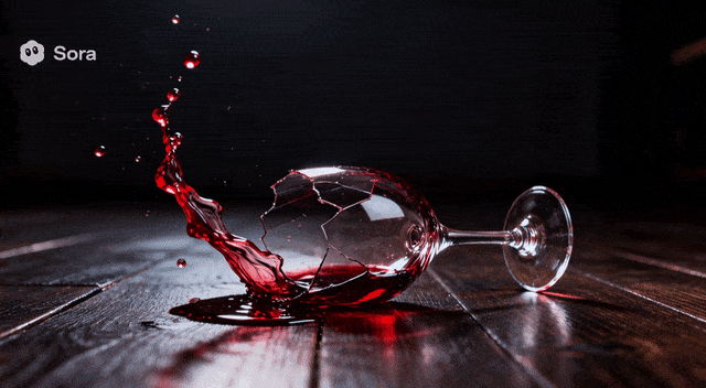 例如,水晶酒杯掉地板,突然爆裂的瞬间的视频中,Sora 2生成的动作连贯性不如Vidu Q2。