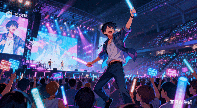 对下列演唱会场景的视频中,Vidu Q2生成的视频比较流畅,而Sora 2生成的视频有点像PPT。