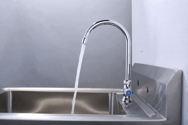 Prompt:水管里水在流动,镜头推进对焦到水管开关上