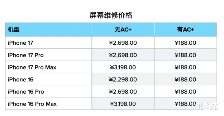 那么,有更便宜的维修方式吗?当然,有不少第三方店铺也能换屏,不过这些店铺维修水平参差不齐,也不一定能保证官方正品屏幕,在这里就不讨论了。对于官方渠道来说,还可以购买AC+服务,如此一来屏幕维修价格就能大幅下降到188元,相当于在原价的基础上打了个0.7折!这个价格甚至比第三方店铺还要便宜,真有这么划算的事?